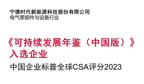 宁德时代再度入选标普全球《可持续发展年鉴(中国版)》